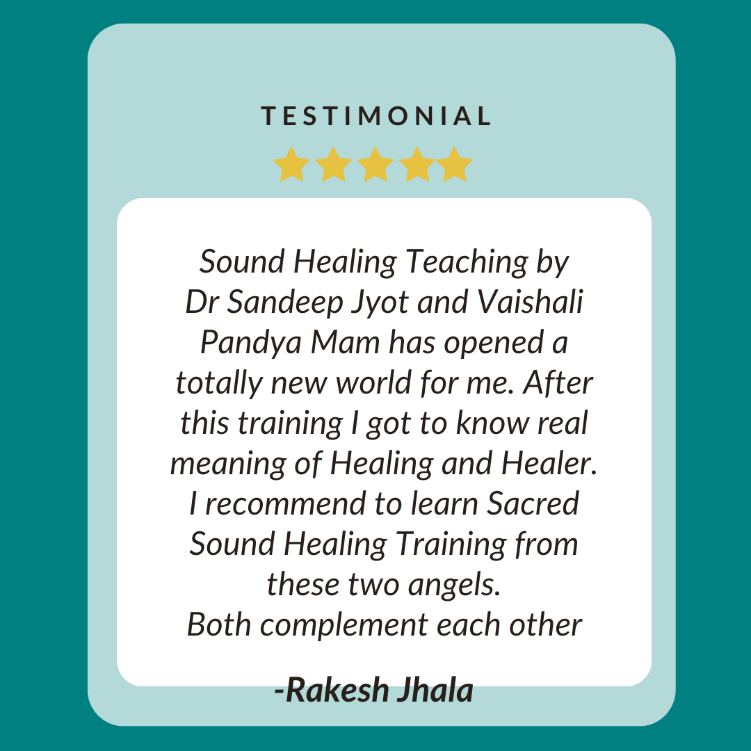 We are delighted to welcome you to our Sound Healing Training Program. No Medicine is Better than Sound Medicine, No Surgery is Better than Sound Surgery. We have Experienced the magic of the sound day in and day out with patients of Tinnitus, chronic pain, Anxiety, Low Self Esteem, Insomnia, Depression, Heart patients, Diabetes, Cancer, to name a few. Sound meditation is the deepest Meditation we have ever experienced.
